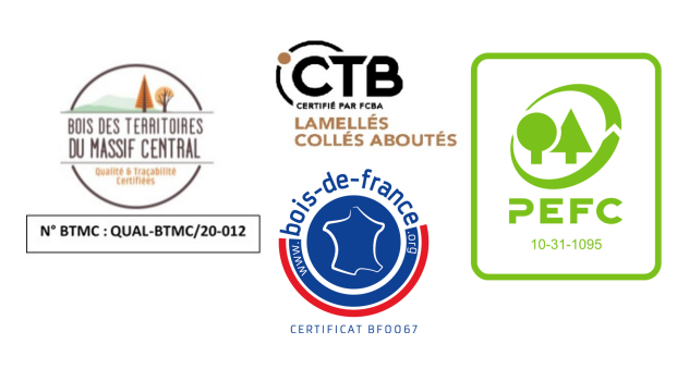 La marque CTB-LCA certifie la qualité du collage des lamelles entre elles, et le cas échéant : la qualité des aboutages (résistance mécanique et salubrité) et la qualité du placage.